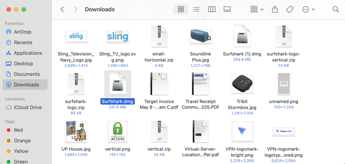 Surfshark in Mac downloads folder
