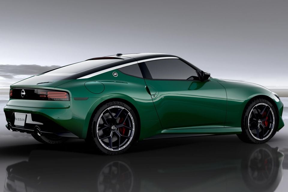 The facelift model leans further into this generation’s retro theme with its two-tone alloy wheels, while the Unryu Green paint job is inspired by the Grand Prix Green available on the original ‘S30’ generation. The car on display here is missing the subtle boot lip spoiler fitted to pre-facelift models.
